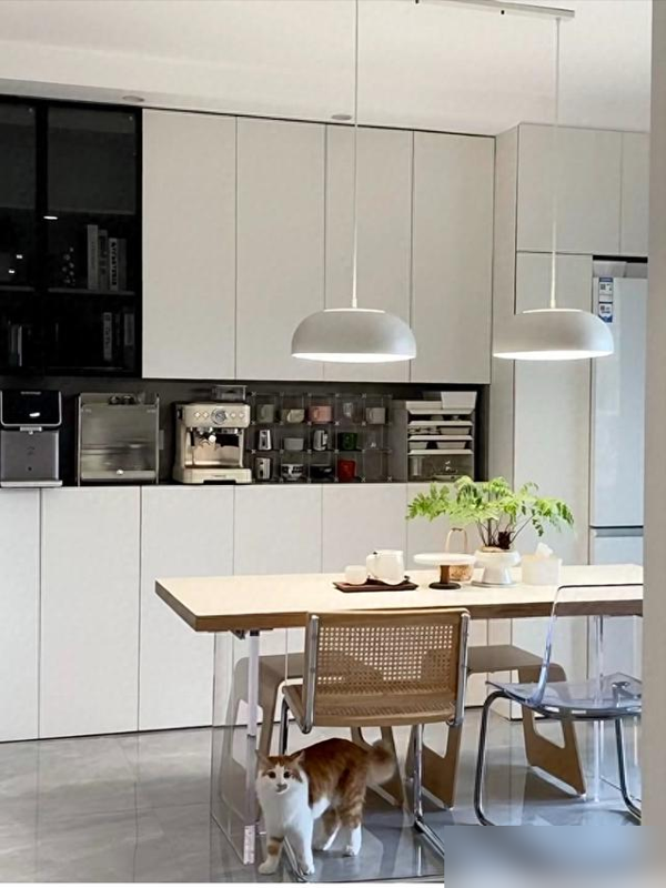 餐桌嵌进餐边柜,冰箱挨着厨房门——动线顺了家务省一半。